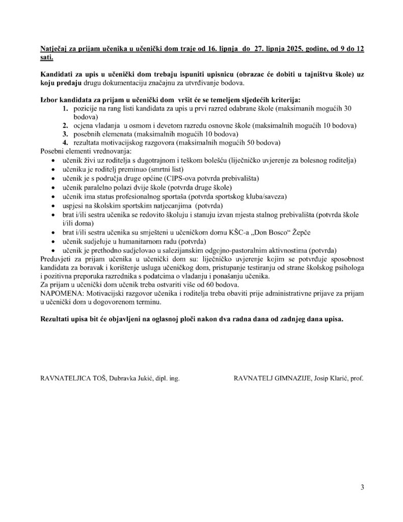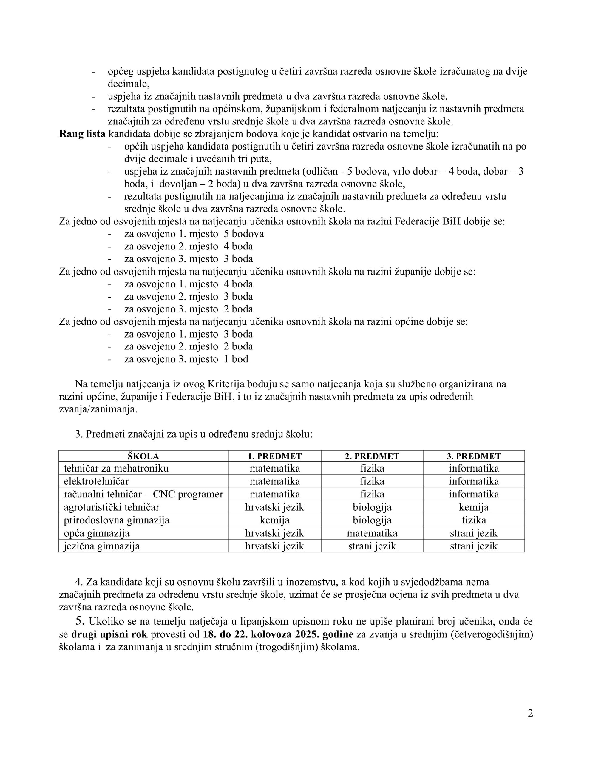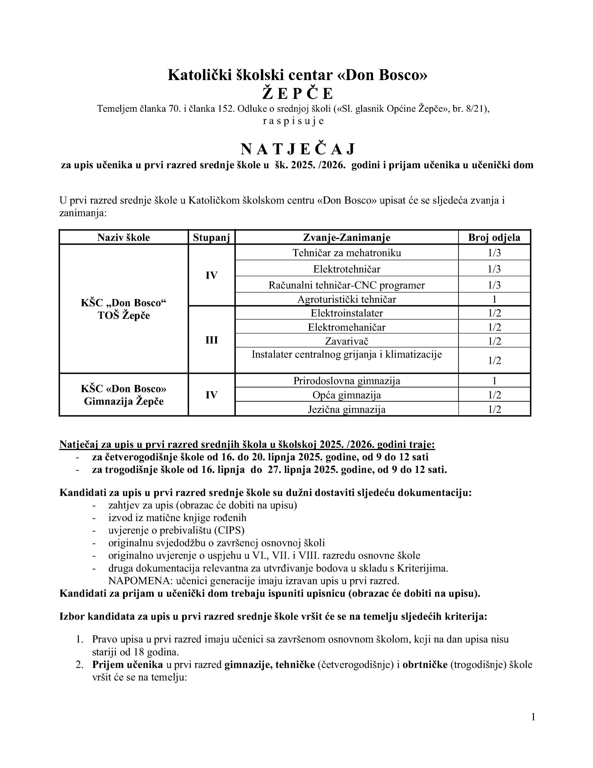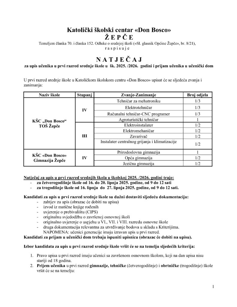 U nastavku natječaj za upis učenika u prvi razred srednje škole – školska 2025. / 2026. godina.